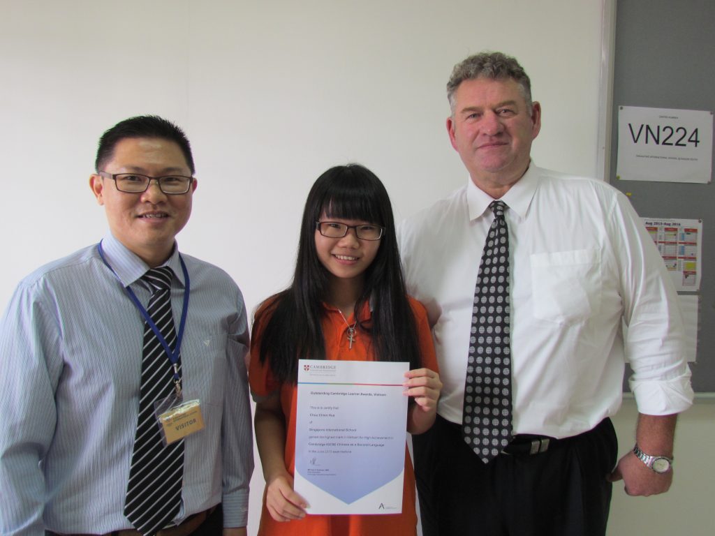 Congratulations to Chou Chien Hua for her amazing achievements in her Cambridge results. Awarded 1st place in Vietnam for Studies in Chinese. The school is so proud of her achievements.