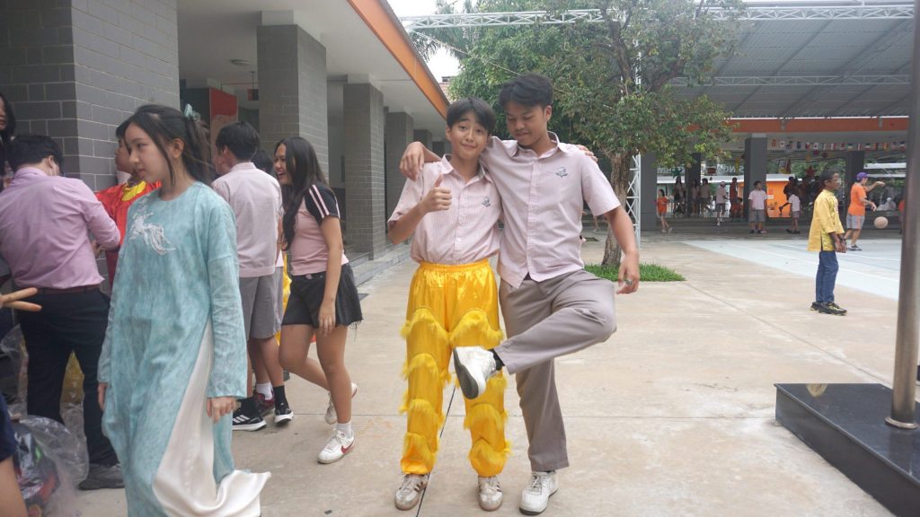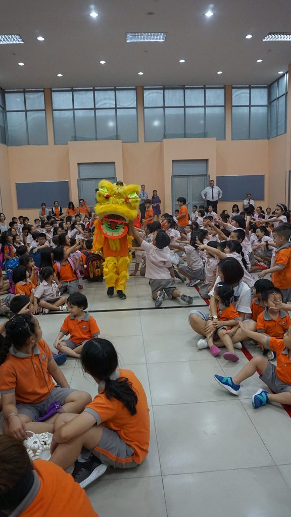 Lion Dance Performing by Year5 and Year6 Integrated Classes from Year 4 to Highschool make lantern